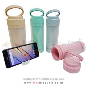 กระบอกน้ำรักษ์โลก ฝามีที่จับได้ ฐานสามารถดึงออกมาตั้งโทรศัพท์ได้